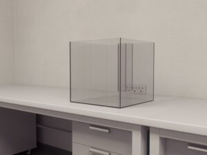 该设备由一个透明家用笼组成,× 48.3 厘米(深)× 15.2 厘米(高),配有钢丝顶部。笼子的底部由硬木片床上用品制成。